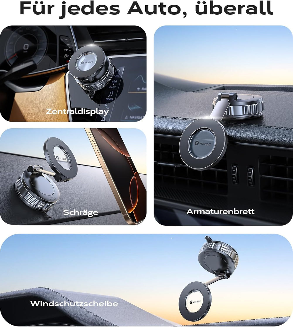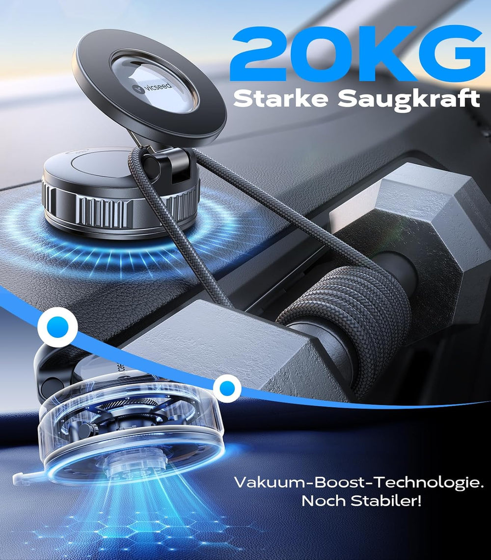 Die Halterung verwendet eine fortschrittliche Vakuum-Saugtechnologie und bietet eine Haltbarkeit von bis zu 20 kg, was sie äußerst stabil macht. Dazu kommt die starke magnetische Kraft der 20 N55-Magnete, die für sicheren Halt sorgt, selbst auf unebenen Straßen.